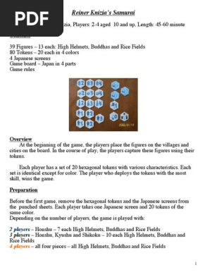 Knizia S Samurai English Rules Pdf Japan Leisure